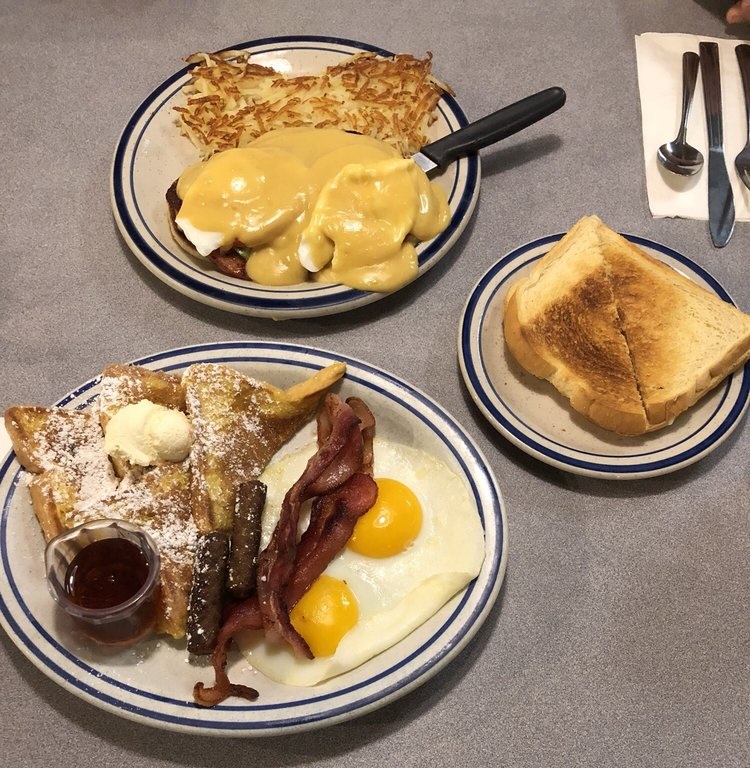 Full breakfast selection, including (but not limited to!) Omeletttes, Pancakes, Waffles, Biscuits and Gravy, and Steak and Eggs!