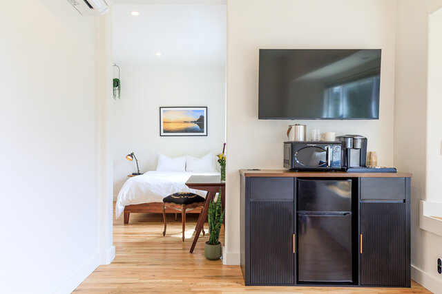 King and Queen beds, Private Bath, robes, coffee bar nooks, mini fridges.