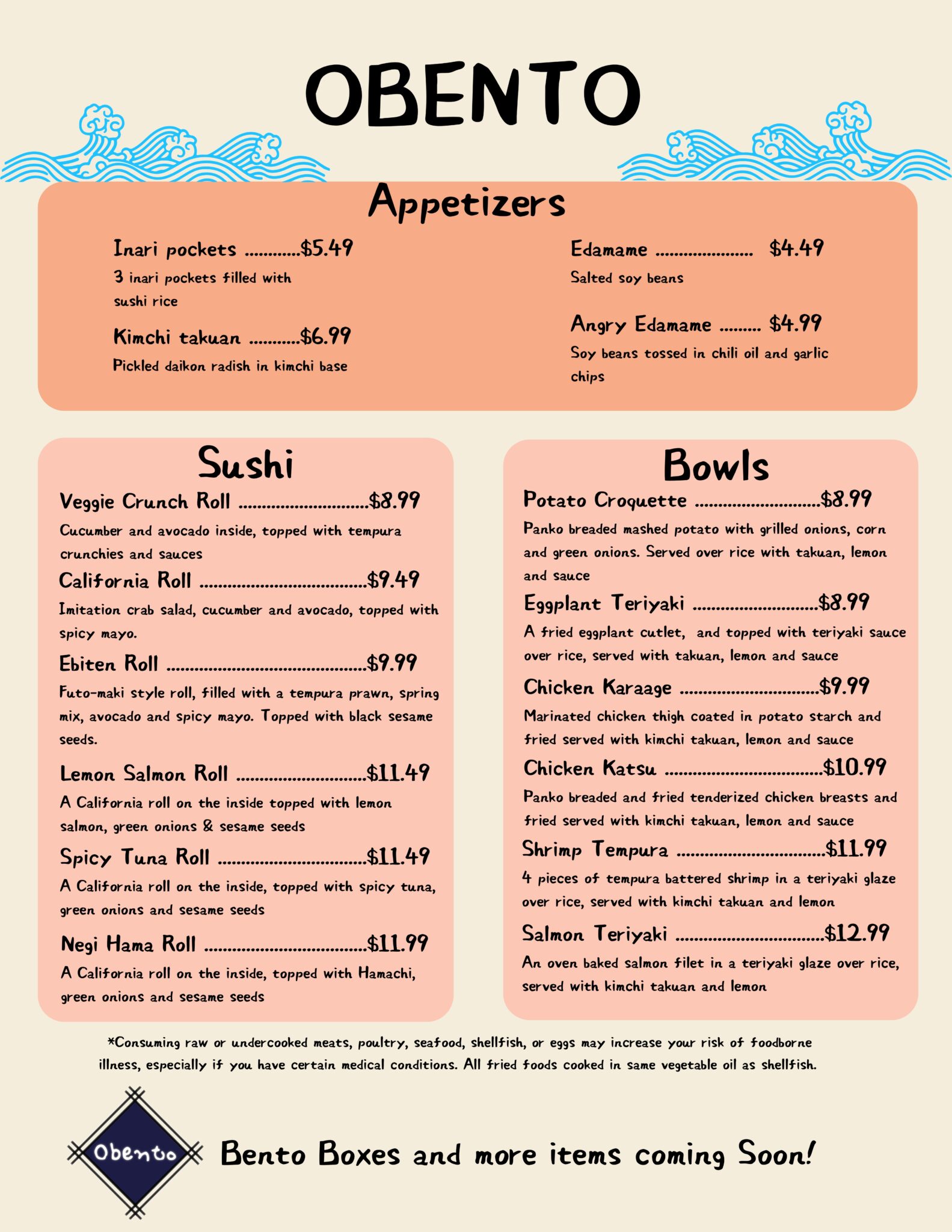 Obento is a casual, affordable Japanese eatery inspired by Japanese Family Mart-type stores and the “authentic and affordable” motto. All items are fresh and ready to go when you get there--easy for take out or dining in! The warm atmosphere and friendly service make it a perfect spot for a quick lunch or a casual dinner with friends.